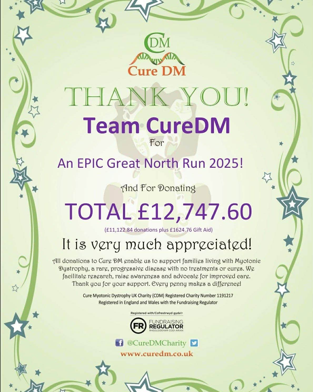 If you are interested in taking part in the GNR for 2026 you can still register your interest HERE. The places for 2026 haven’t yet been announced so if you like to join Team CureDM for the GNR we would love to have you! Remmeber – you can still join the team and run for us if you have a ballot place!